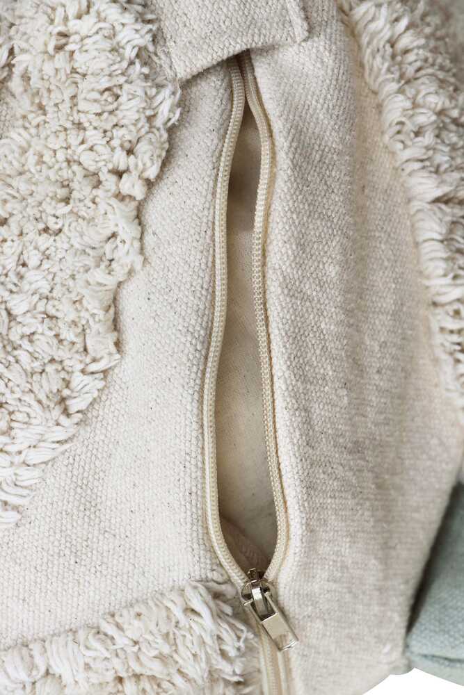 Composition: Cover: 97% cotton; 3% other fibers; Filler: 100% recycled PET bottle fibers; 90% polystyrene pearls